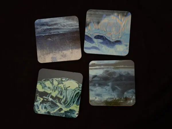 Offered in sets of four single-photo coasters, with each coaster featuring a different photograph. Each coaster measures 4” x 4”. High gloss finish, vibrant colors, and rounded corners for a polished look. Made from durable composite wood, with cork on the reverse side. Fade and scratch resistant and easy to clean